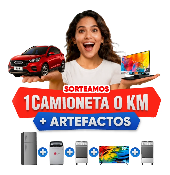 Del 15/01/2026 al 12/07/2026, solo para clientes que se registren en: https://departamento.hogarysalud.pe/; posterior a ello, podrán sumar en su cuenta todas las compras que realicen en nuestros canales de venta, siempre que se identifiquen con su DNI y/o CE (tienda física y call center) o ingresen a su cuenta (App o Web) al momento de comprar. Los premios disponibles incluyen 1 camioneta y 6 artefactos (refrigeradora, 2cocina, televisión, lavadora, microondas), sujetos a disponibilidad. Por cada S/. 10.00 de compra acumulas una opción para ganar el premio elegido. Términos y condiciones en: https://departamento.hogarysalud.pe/terminos-y-condiciones/ Sorteo: 17/07/2026